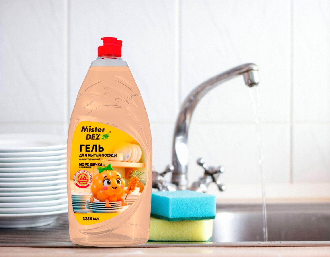 Гели из линейки Mister DEZ подходят для удаления загрязнений с любой посуды, мытья овощей и фруктов. Биоразлагаемый состав позволяет использовать гели в домах с септиками. Объём гелей из линейки — 1350 мл.