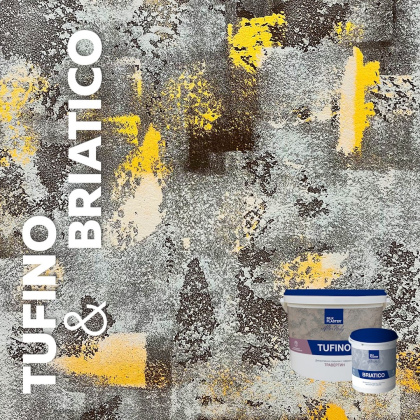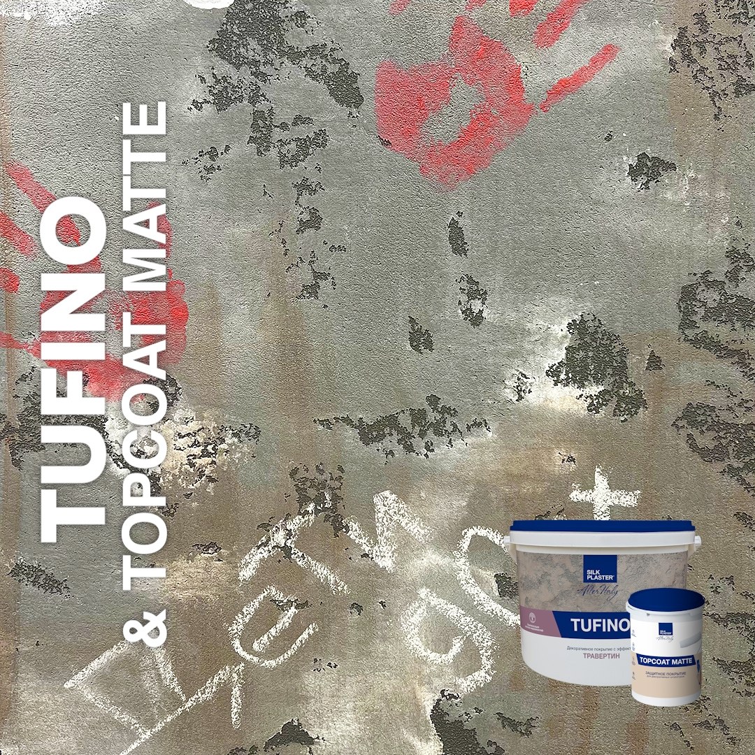 TUFINO Naturale — декоративная штукатурка на основе натуральной извести со среднезернистым мраморным наполнителем. Позволяет создавать фактурные поверхности, имитирующие натуральный камень травертин, микроцемент, а также известняк.