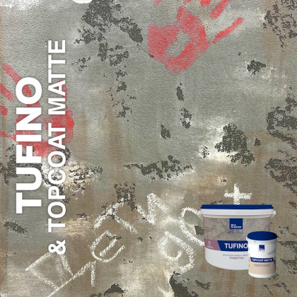 На фото — примеры использования TUFINO в сочетании с разными техниками и материалами. Такой подход позволяет создавать уникальные декоративные эффекты, сохраняя высокие эксплуатационные характеристики покрытия.