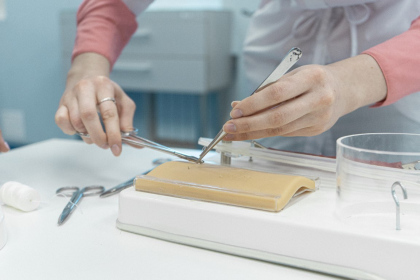 - применение одиночных (узловых и непрерывных), внутрикожных швов, их снятие, наложение