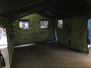 ● по 2 окна с 4х сторон с вшитой москитной сеткой, а также прозрачной плёнкой и глухим брезентомм на липучках.