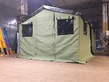 Мы шьём походные лагерные палатки из брезента. По стандартным размерам, а также по проекту заказчика. Оснащаем наши палатки усилениями, окнами на липучках и молниях.