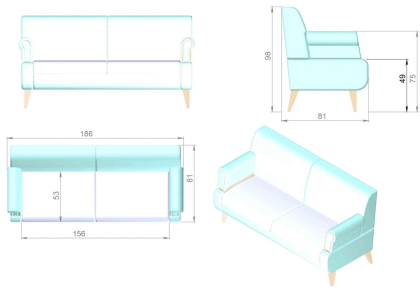 В модели присутствуют кресла, пуфы. Наполнение подушек спины и сидения — высокоэластичный пенополиуретан .